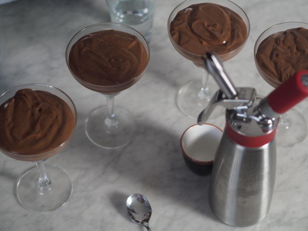 Beim Genuß unseres Mousse au Chocolats entkam uns ein kleines Halleluja! Den Fertigbauschaum aus dem Supermarkt, den wir zu Studienzwecken gekauft hatten, haben wir verschmäht, weil wir ja doch keine Versuchskaninchen sind. Wir sind ja nicht bei Sebastian Lege!