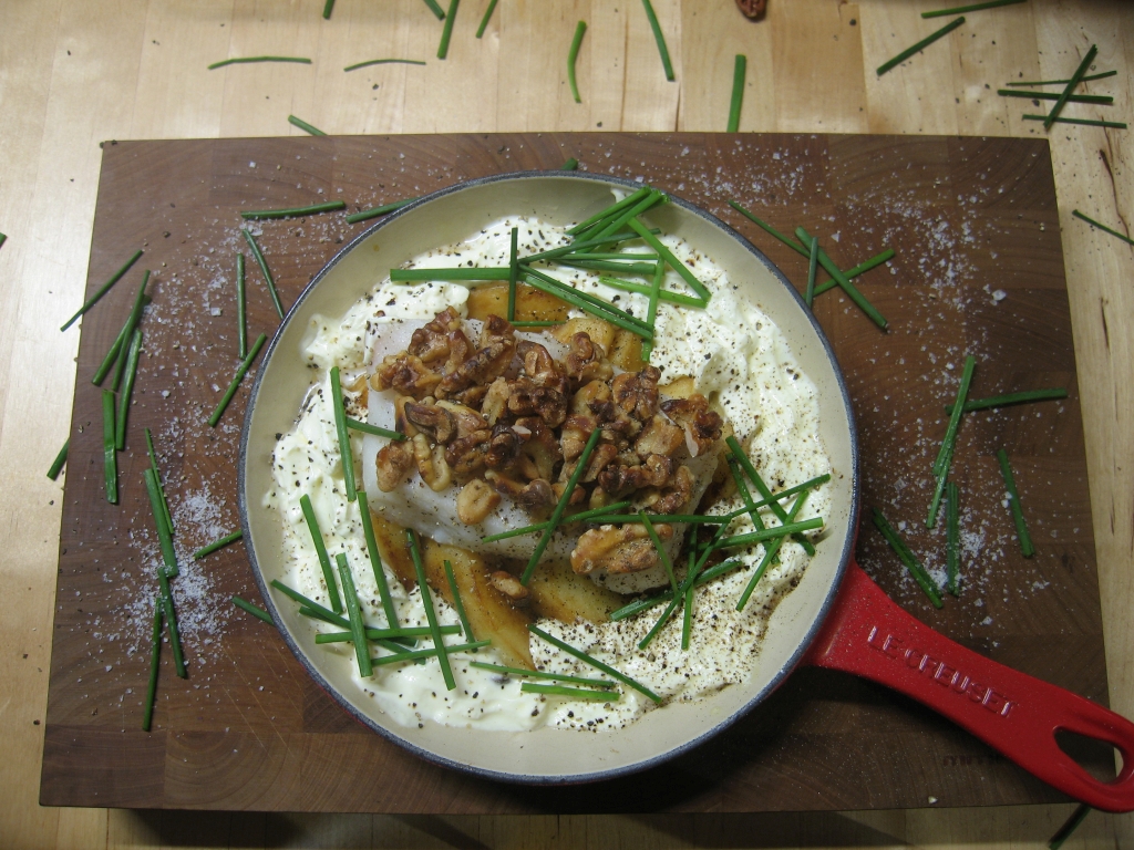 Kabeljau im Walnussmantel auf Pommes Fruites