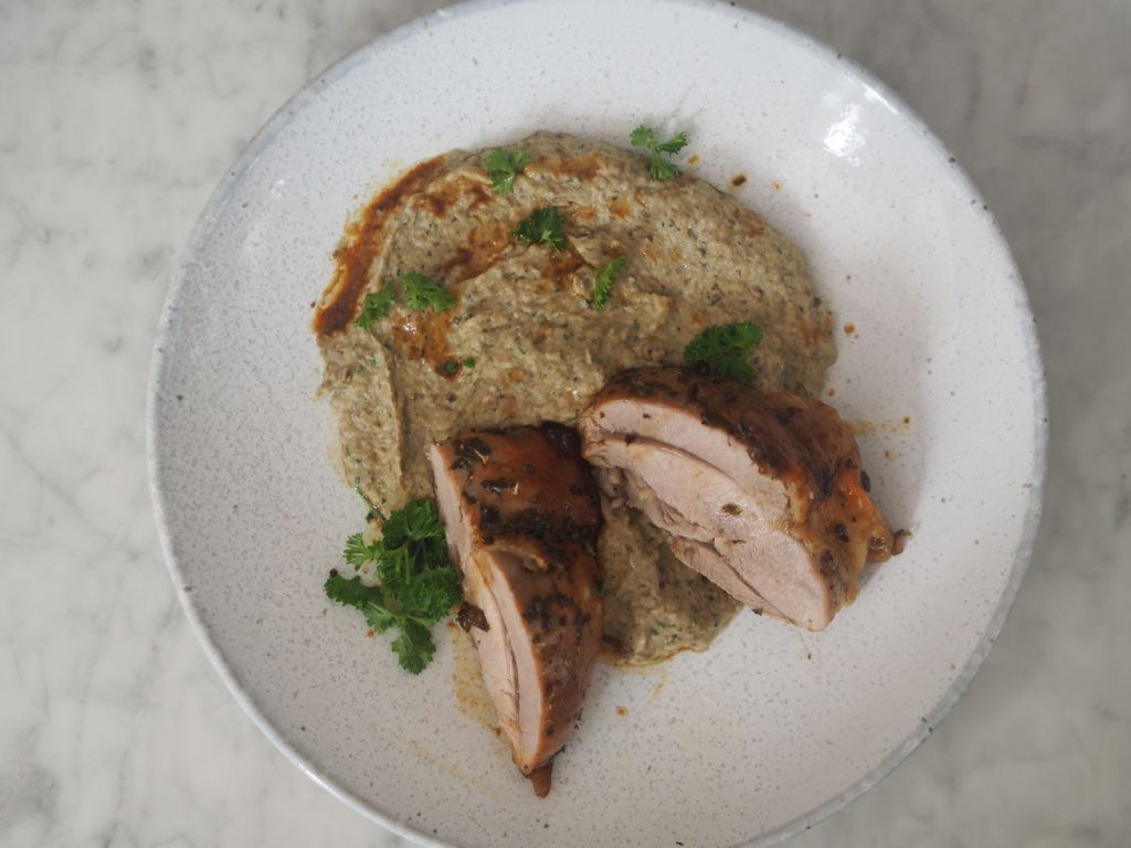 REZEPT MANGALITZA-SCHOPFBRATEN MIT SCHWARZWURZELSAHNE UND SCHWARZBROTKNÖDEL