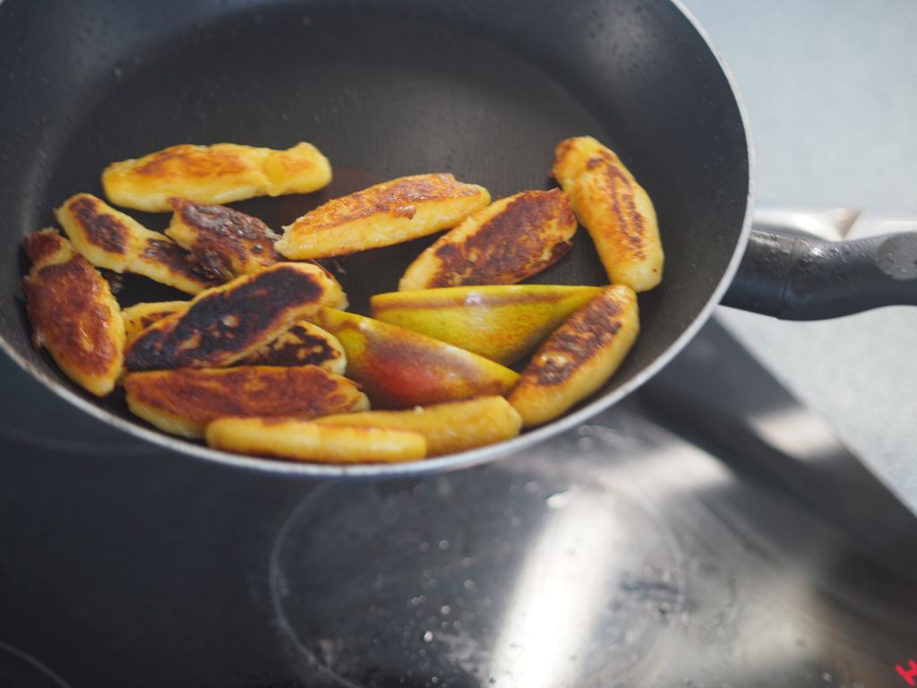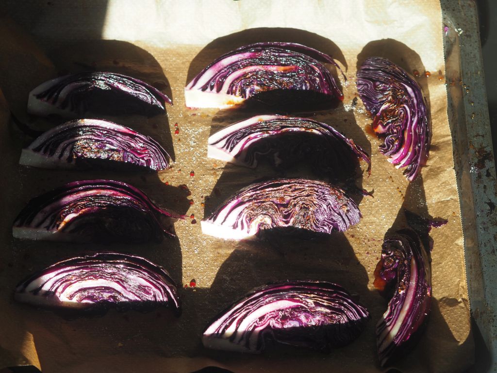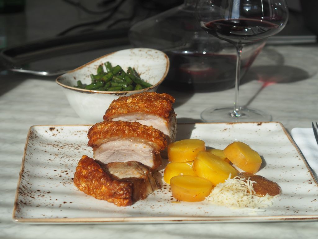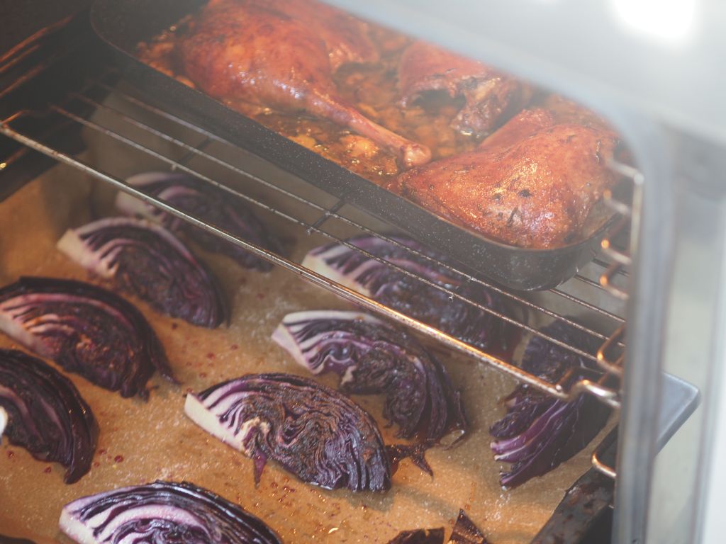 Als Vorspeise gab es Katonák (Soldaten) vom Mangalitza-Speck, daher kam zum Schweinsbraten auch noch Kraut mit Mangalitza-Speck. REZEPT Mangalitza-Speck klein würfeln. Auf mittlerer Hitze in der Bratpfanne leise anbraten, und das Fett langsam auslassen. 2 kleine fein gehackte Zwiebel dazu geben. Anbraten. Dann mit Honig karamelisieren. Mit rotem Balsamico-Essig ablöschen. Ganz einköcheln. Dann das feingeschnittene Kraut, die Hälfte haben die Kuckackák aufgefressen, in die Bratpfanne geben. Gut durchrühren, salzen. Ein bißchen Wasser dazu, gemahlener Kümmel rein und zugedeckt 20 Min. schmoren lassen.