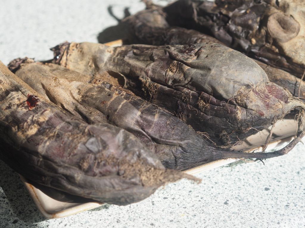 Rahmschwarzwurzeln und Schwarzbrotknödel angelehnt an ein Rezept aus: Alexander Herrmann, AH IQ 3 Anlaß, S. 48, Collection Rolf Heyne, 2012.
