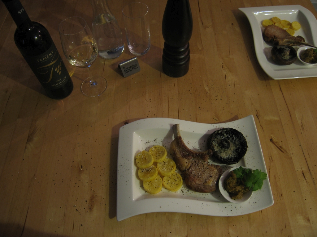 Beim nächsten Waldfest gibt es Kaninchen oder…. Wildschwein-Lungenbraten mit Gnocchis, Holler-Sauce und Portobello-Pilzen.