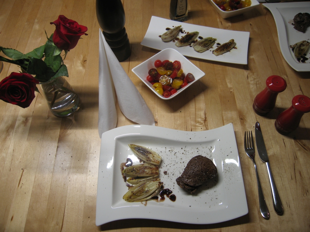 Chicorée kurz angebraten mit Barolo-Essig… brasilianisches Steak dazu und passt.