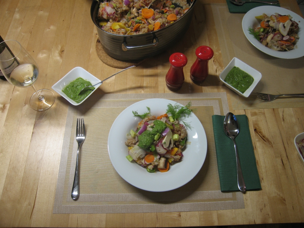 Quinoa-Buchweizen-Gemüsetopf mit Kräuterpesto