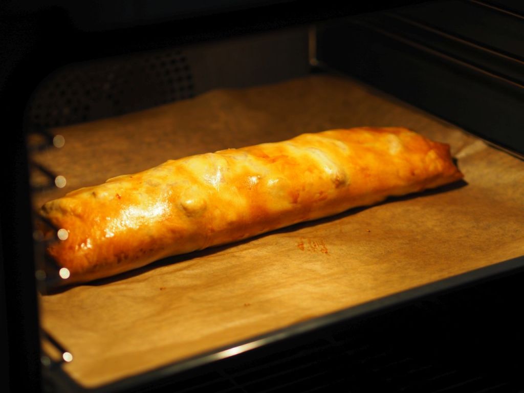 Es bereitet mir zu viel Aufwand, das Rezept vom Brioche hier wiederzugeben. Nur soviel: Es wird ein Dampfl ua. mit Germ und Zucker gemacht, das 20 Min. gehen gelassen wird; dann wird es verknetet, an dieser Stelle wurde der Ruf nach einer KitchenAid laut – und gehen gelassen. ca. 30 Min. Dann wird es in mehrere gleiche Teile geteilt und auf einem Backblech ausgelegt, und eine weiter halbe Stunde gehen gelassen, bis es endlich mit Dotter bestrichen gebacken wird,