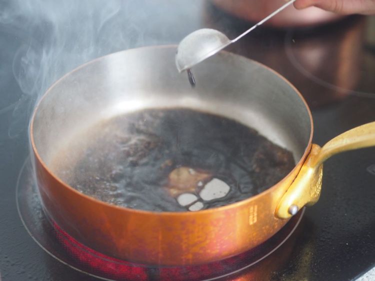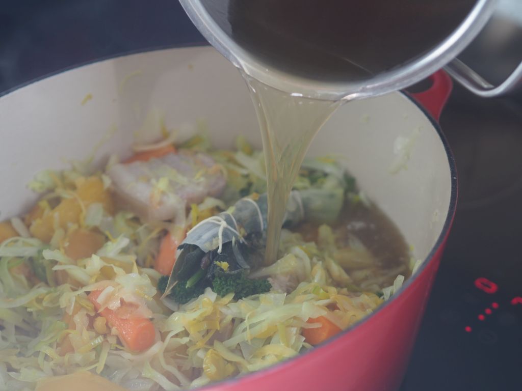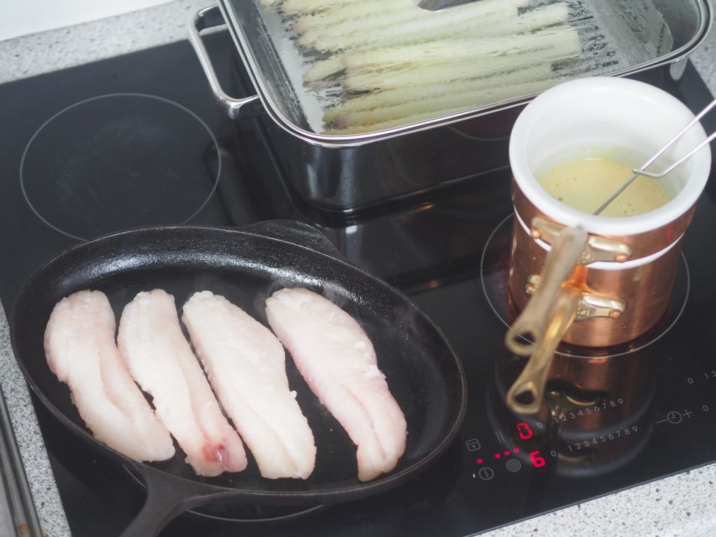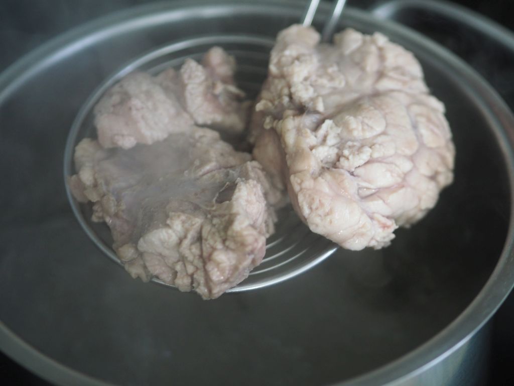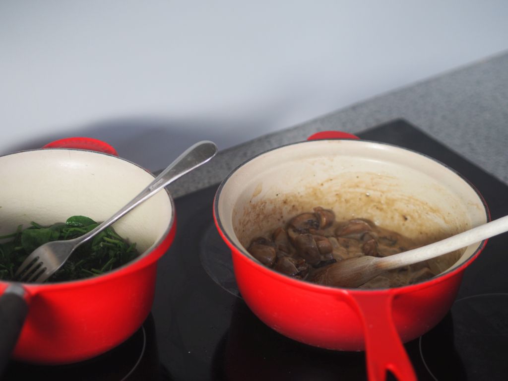 Bressehuhn mit andren Pilzen zu kombinieren, ist unvorstellbar. Viele Rezepte gibt es mit Morcheln. In der „Kulinarischen Enzyklopädie“ aus der Reihe „Grand Livre de Cuisine“ von Alain Ducasse gibt es jede Menge Rezepte für Bressehuhn, mit Zutaten, deren wir nicht (mehr) habhaft werden: mit Trüffeln, Flußkrebsen und eben mit Morcheln. Ein Rezept fanden wir, das ohne all diesen Zutaten auskommt. Das Huhn wäre zu pochieren, doch die Hofköchin hätte es mangels Nadel nicht wasserdicht dressieren können. Dabei – so stelle ich mir vor – wäre genau diese Art der sanften Zubereitung am besten: in Hühnerbrühe mit Kochwein und etwas Trüffeljus, der den Eigengeschmack hervorhebt. Aber ganz ohne Gewürze.