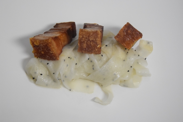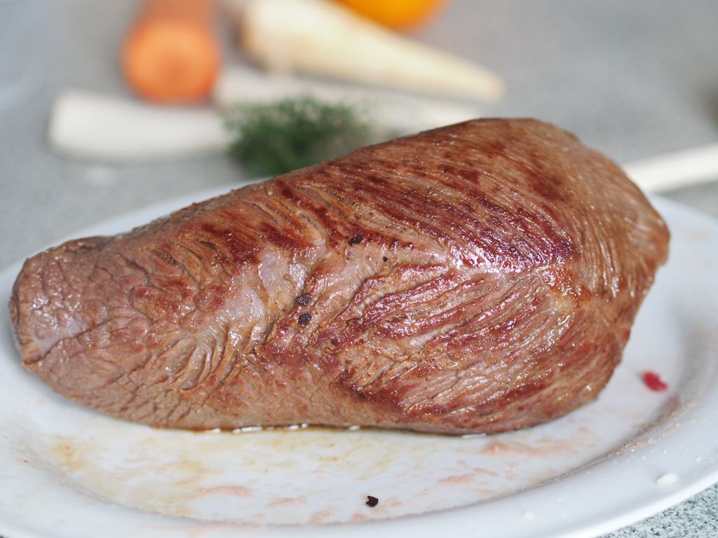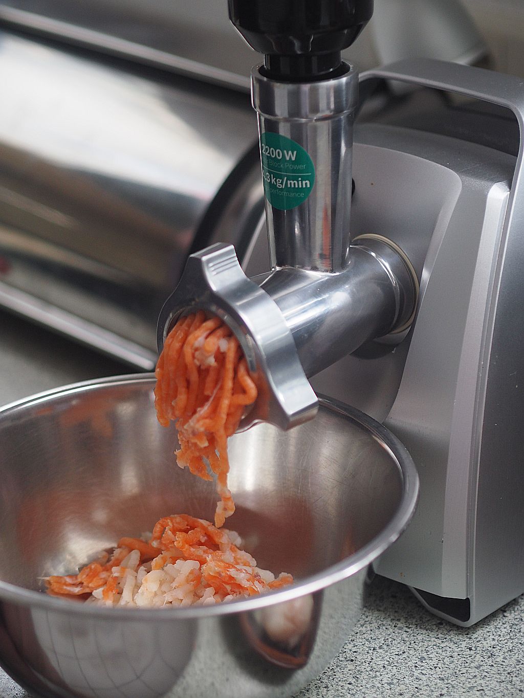 Faschierte Lachs-Kabeljaulaberln mit Bratkartofferln und Chicorée-Radicchio-Salat ist das Resteessen vom großen Sommerschlußschmaus. Was man alles mit Überbleibseln machen kann… nur die Bratkartoffeln und die Lachsschwänze wurden dazugekauft. Der Kabeljau ist Abfall vom Schmaus; auch der Salat blieb übrig, kam nicht zum Einsatz, wie ursprünglich gedacht.