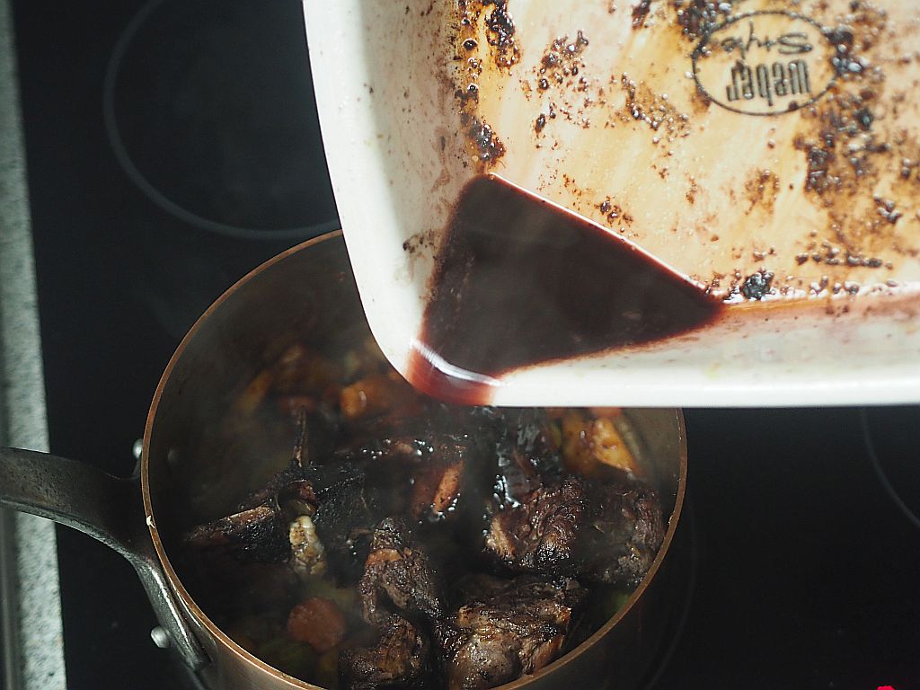 Ragout Die gewürfelte Fleischstücke auf Olivenöl solange anbraten, bis die Flüssigkeit weg ist. Mit Noilly Prat ablöschen. Die vorbereitete Wildsoße dazugeben. Etwa 40 Min. leise köcheln, und zum Schluß mit Salz abschmecken und binden.