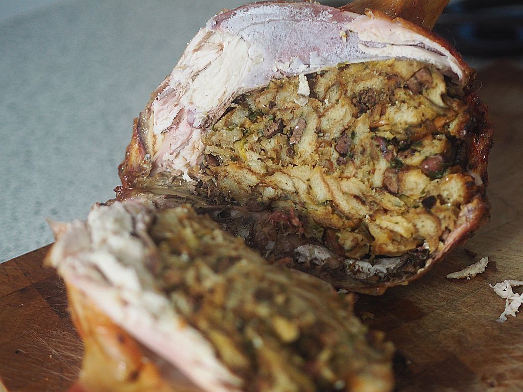 Wir halten den Heiligen Martin ebenso in Ehren, dieses Jahr mit einem Gansl aus dem Waldviertel. Dazu kamen mit Kürbis gefüllte Erdäpfel-Rouladen und ein Apfel-Rotkraut. Davor gab es eine altmodische Ganslsuppe; – sie wurde mit einer Einbrenn gemacht, die Küchenfee ließ sie 3 Stunden köcheln.