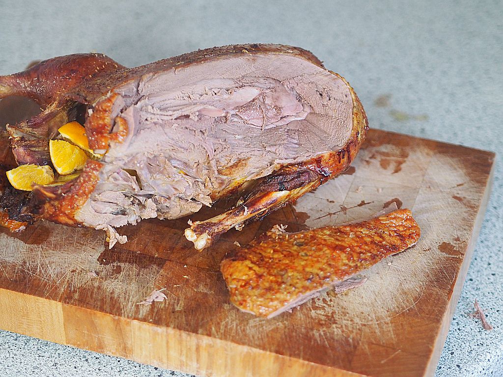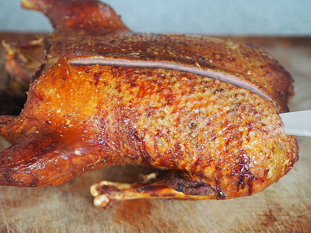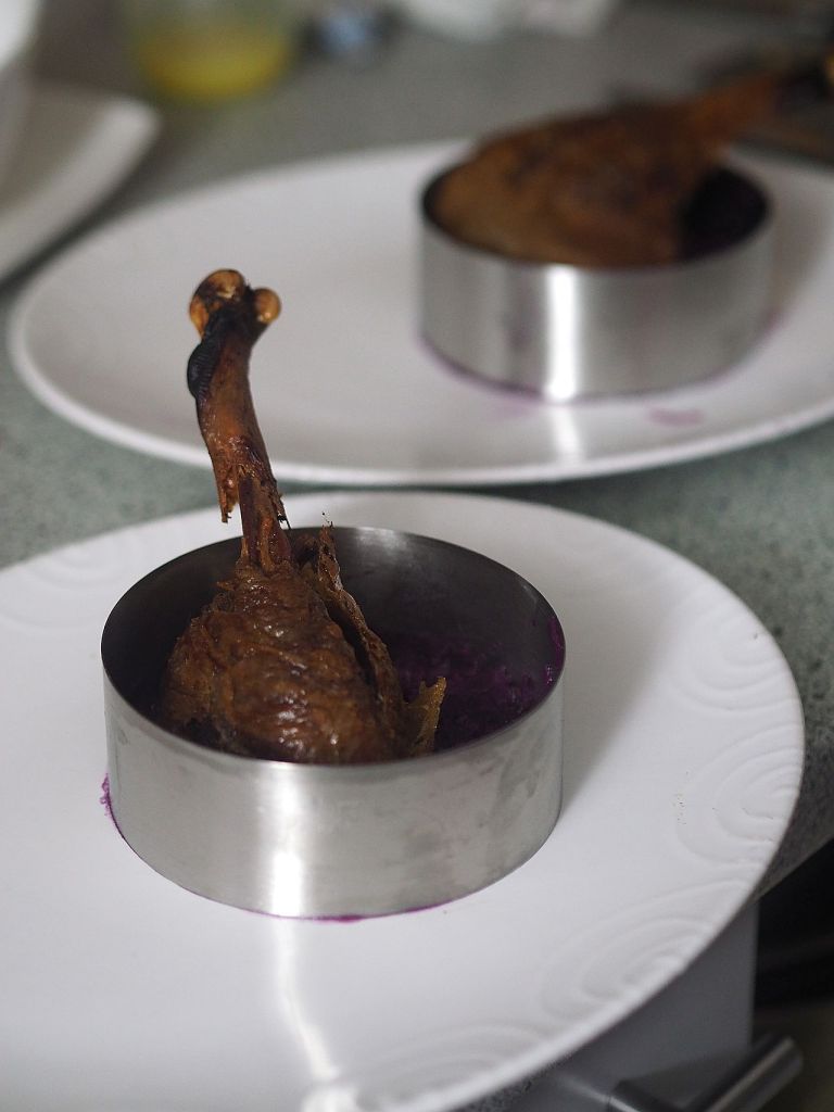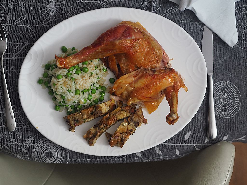 Nächstes Gericht: Ente, die wurde nun im Waldviertel geschlachtet und an uns geliefert, deshalb gibt es das als nächstes. Man muß sich strecken, nach Verfügbarkeit.