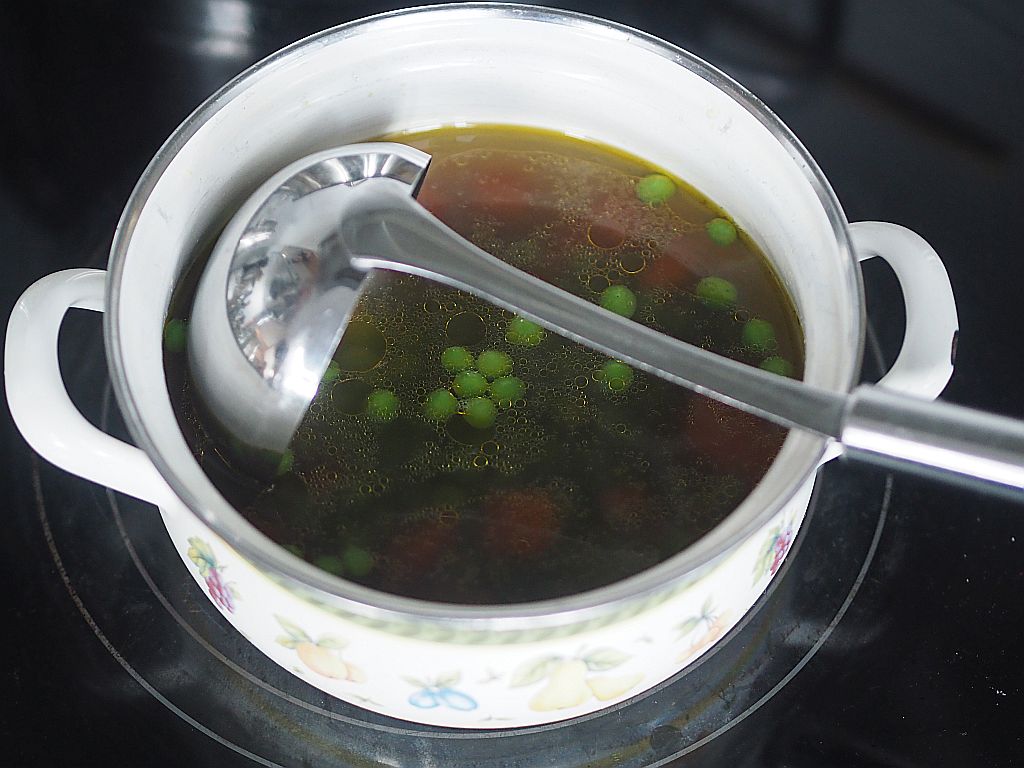 Es wurde eine Suppe gekocht. Mit selbigen Schupfnudeln, wie bei der gebratenen Ente. Von der Ente kamen die Innereien – außer der Leber – dazu die Flügerln und der Hals. From Nose to Tail, das ganze Tier ist zu brauchen. Aber wer mag heutzutage noch Suppe. Ich schon! Am Abend gibt es gebratene Entenleber. Der Rest wird durch den Fleischwolf gedreht, die Hofköchin macht Enten-Rilettes.