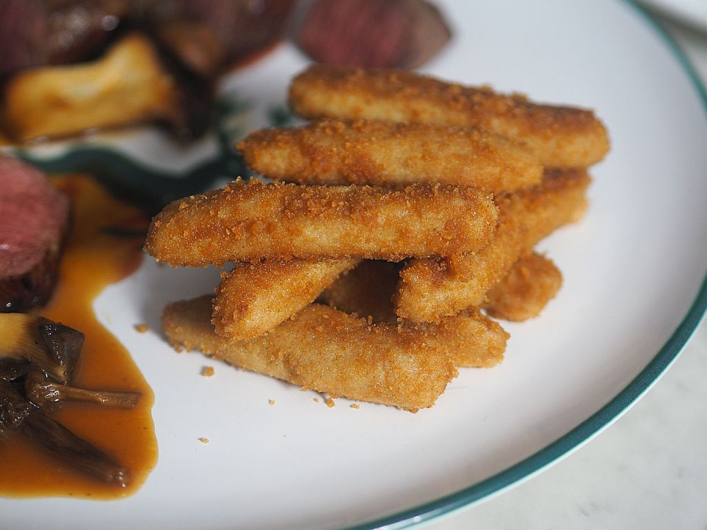 Im 18. Jahrhundert gab es Füllungen mit Austern, Muscheln, Krebsen und Morcheln. Mittlerweile sind sie allesamt in Vergessenheit geraten, doch in einem Restaurant in Luxemburg lebt zumindest die Morchel-Füllung weiter. Im „Oberweis“ kann man heute noch einen mit Morcheln gefüllten Kapaun bestellen. „Kapaundl mit Müscherln“ war eine der Leibspeisen Mozarts. Wir konnten noch ein zweites Sulmtaler Huhn ergattern, und deshalb gibt es heute Sulmtaler Suprêmes mit Morchelfülle und Morchelpolenta.