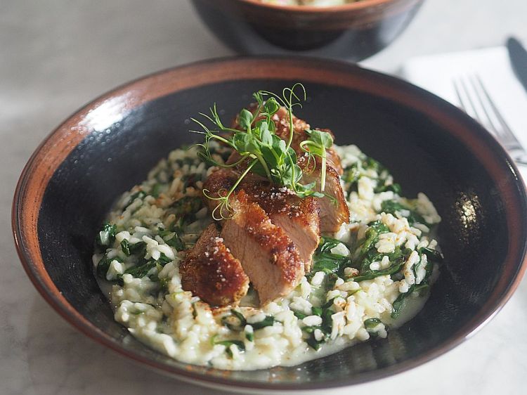 Dieser Risotto kommt ganz ohne Grano Padano aus und schmeckt trotzdem cremig.
