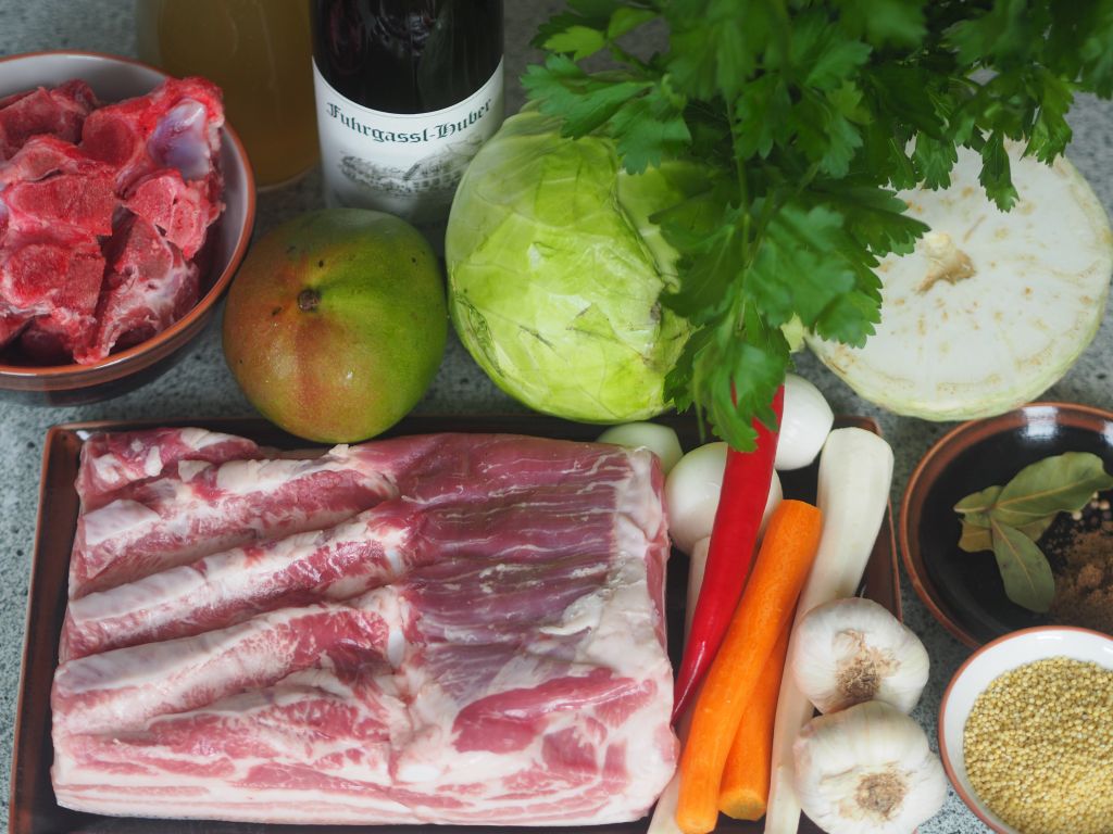 Es ist uns die ehrenvolle Aufgabe zuteil geworden, als Nutznießer der Bestandspflege der Damhirsche im Waldviertel, einen Damhirschrücken zuzubereiten. Das Wildbret wurde ausgelöst, die Knochen bekamen wir separat, für die Wildsoße nach Ducasse.