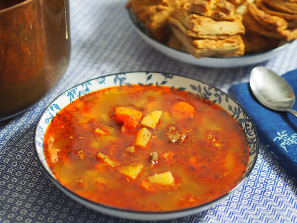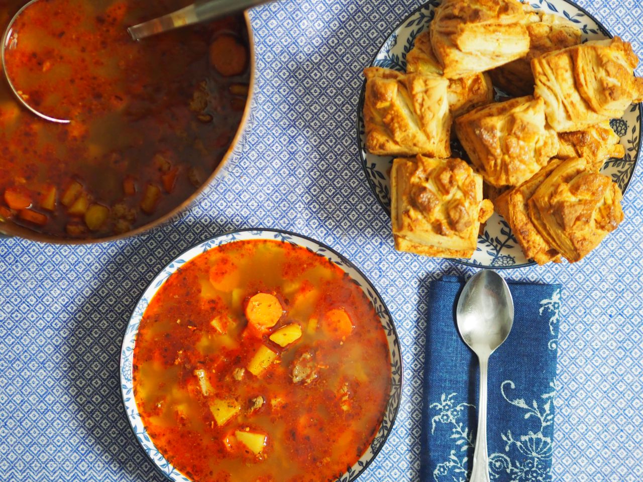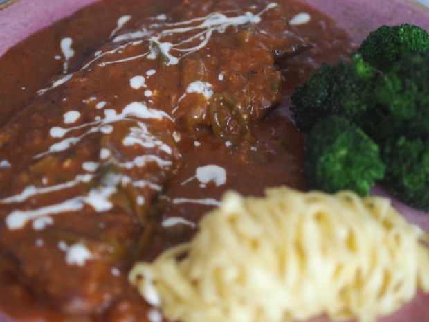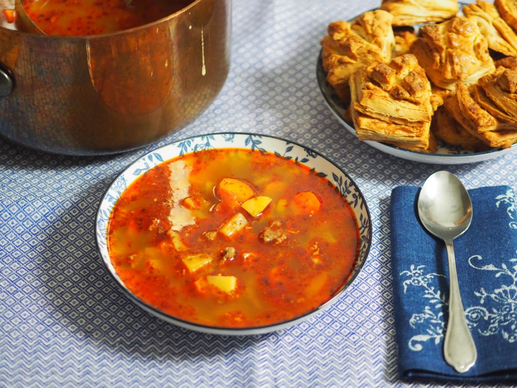 250 g Mehl mit 150 ml Sauerrahm, 3 Dotter, 50 g weiche Butter, 20 g Staubzucker, 1 TL Backpulver, und eine gute Prise Salz vermengen und daraus einen Teig kneten. Eine Viertelstunde eingepackt in Folie in den Kühlschrank geben. auf bemehlter Oberfläche dünn ausbreiten. Mit dem derelyevágó (Nudelschneider) in Rauten und Dreiecke schneiden. Bei den Dreiecken den Zipfel in die Lücke stecken, bei den Rauten nur in der Mitte eine Lücke machen. Dann ins Schmalz goldbraun ausbacken. Mit Staubzucker bestreuen. Marillenmarmelade servieren.