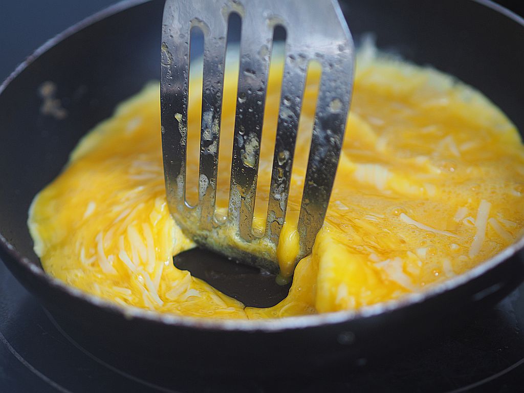 Die Hofköchin hat die Eierspeis für eine Portion gemacht, wir rechnen mit 3 Eiern pro Portion. Was versteht man unter auflockern? Die Hofköchin meint, vorsichtig das schon Gestockte aufheben und das Flüssige darunter fließen lassen, ich hätte es umgerührt. Aber ich glaube die Hofköchin liegt richtig, sonst wäre es ja Rührei geworden.