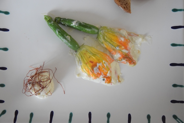 Anrichten: Tomaten klein schneiden, am Teller anrichten und mit Romesco-Sauce beträufeln. Die restliche Romesco-Sauce für die Aubergenensticks zum Dippen verwenden.