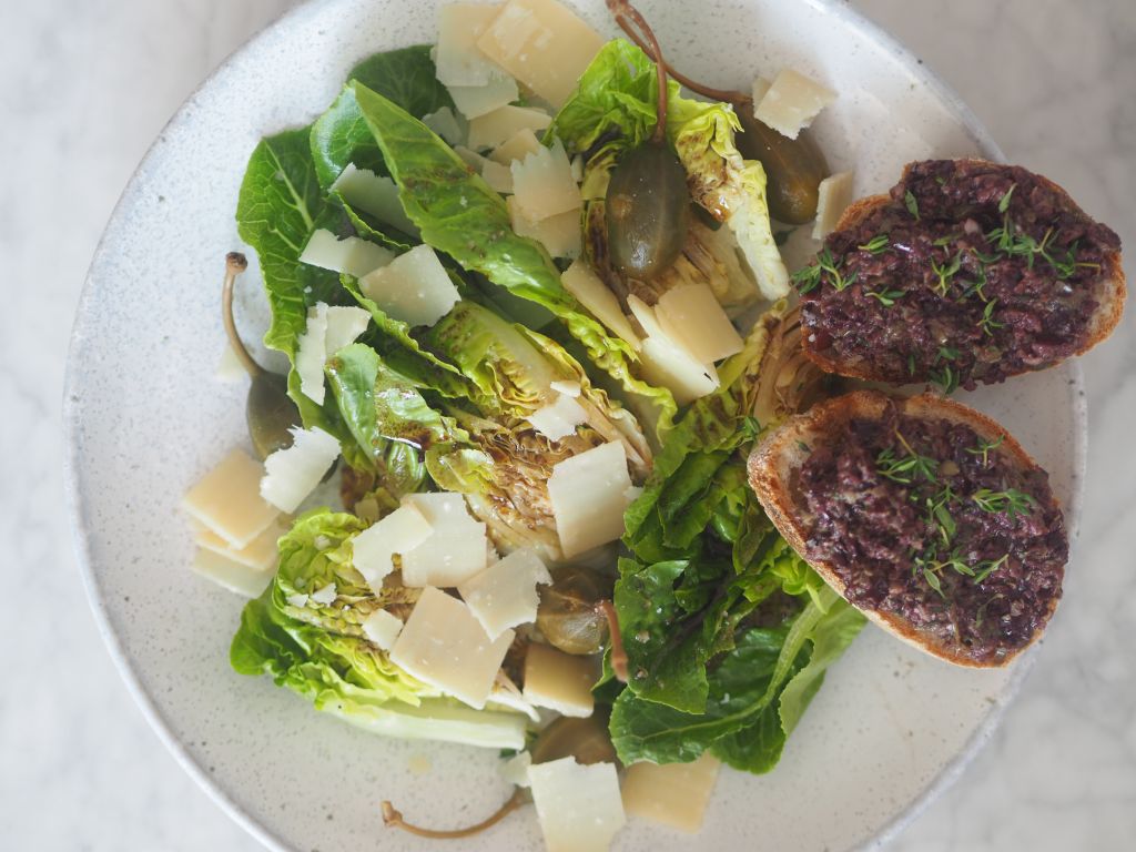 Inspiriert von Doc Flecks „Salate der Superlative“: Romana-Schiffchen mit Parmesan und Salzkapern, S. 136