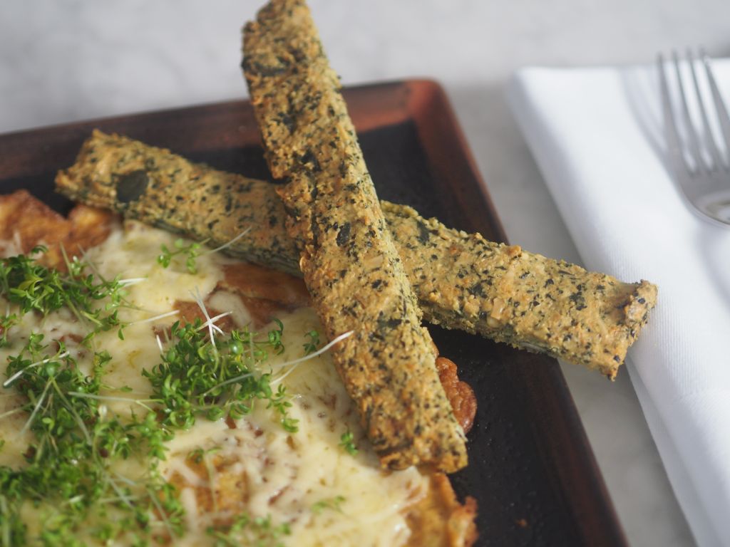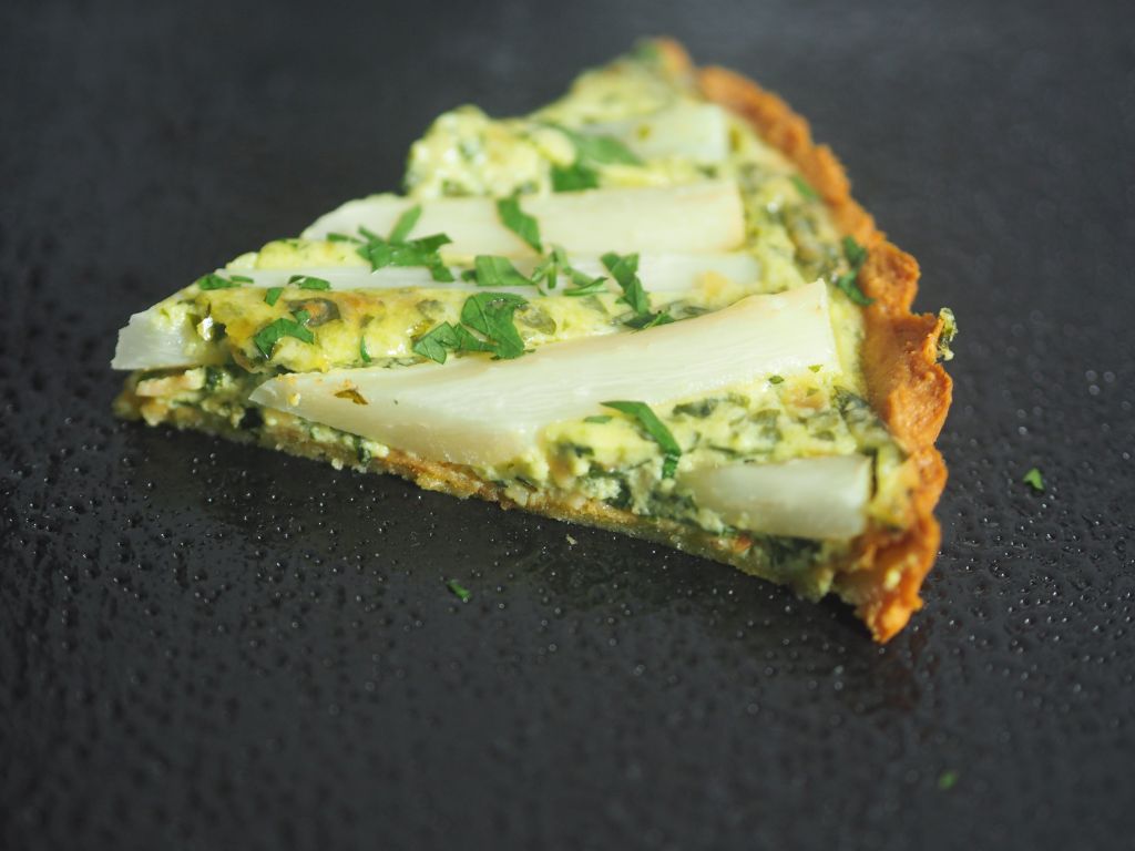 REZEPT SCHWARZWURZEL-QUICHE mit Petersilienpesto auf Mandelboden