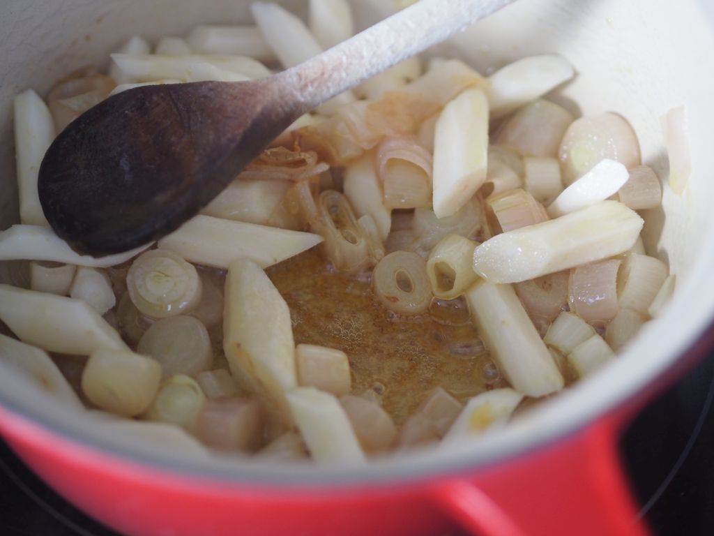 Schwarzwurzel ist ein Gemüse, das viel Ballaststoffe enthält: 17g per 100g, das ist gut für den Darm. Wenn der Darm in Ordnung ist, fühlt sich der Mensch wohl.