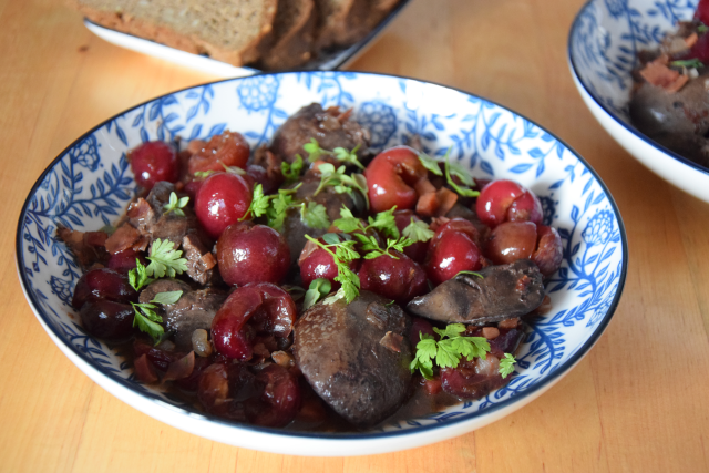 Für Leute, die gerne Kirschen mögen, kommt hier ein Gericht aus dem NOPI-Buch, das wir schon lange im Auge hatten. Wir waren gespannt, wie die eigenwillige Kombination aus Hähnchenleber und Kirschen wohl schmecken würde. Und jetzt endlich ist es so weit: die Kirschenzeit ist angebrochen, es gibt Kirschen! Zum NOPI kehren wir immer wieder gerne zurück, weil es eines der besten Kochbücher ist.