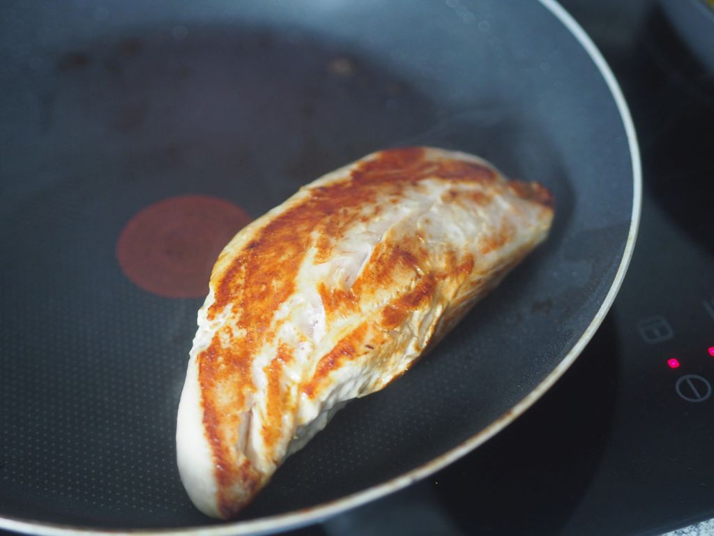 Karfiol mit Frischkäse-Tomatensauce und Hühnerbrust-Streifen