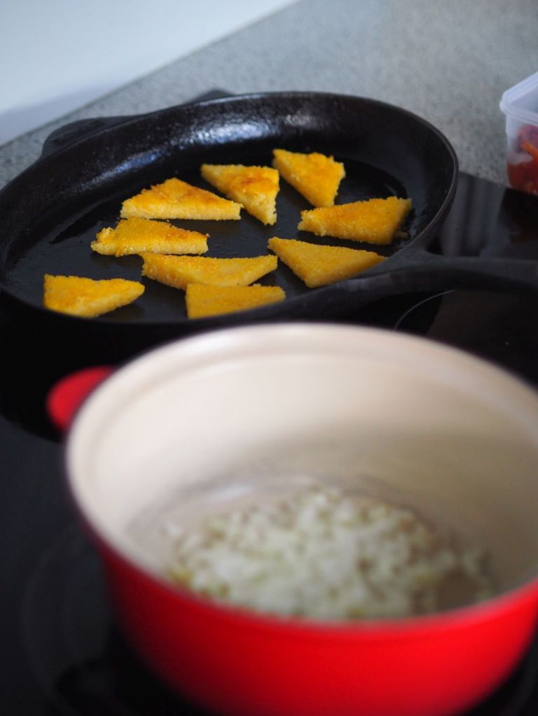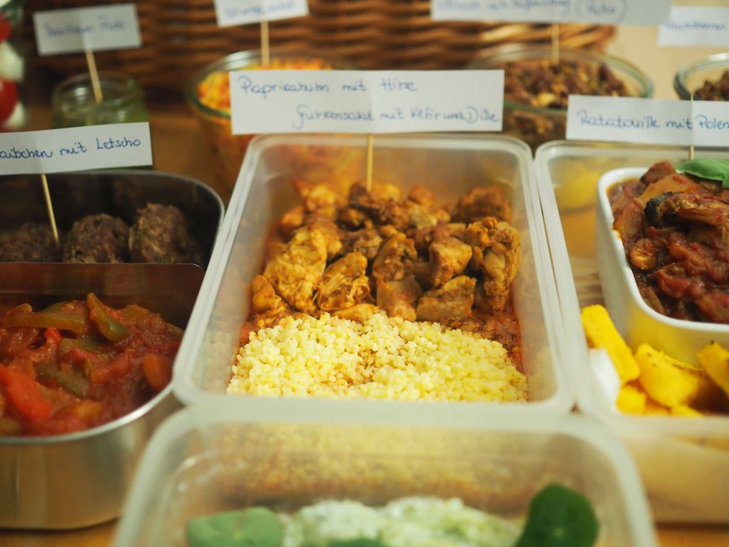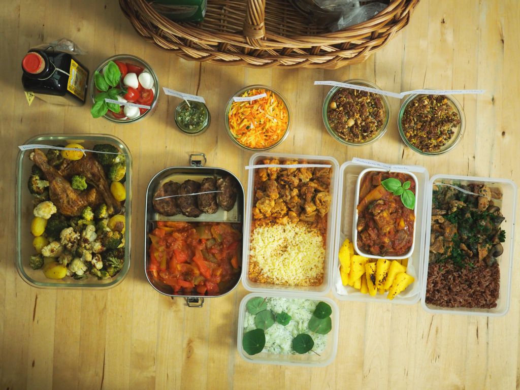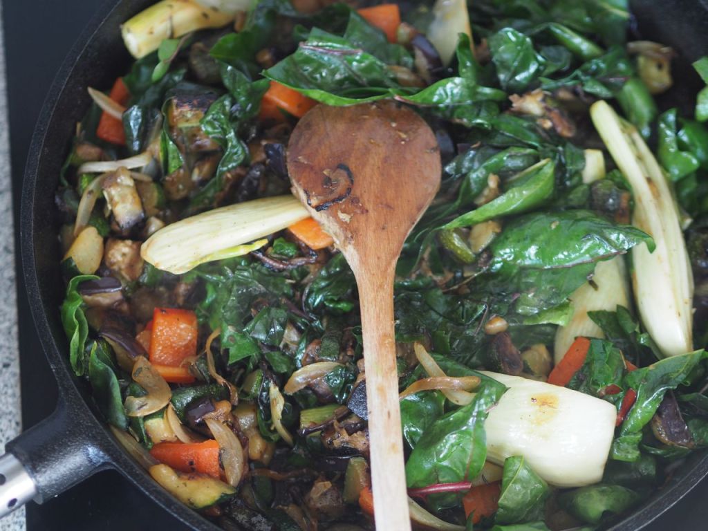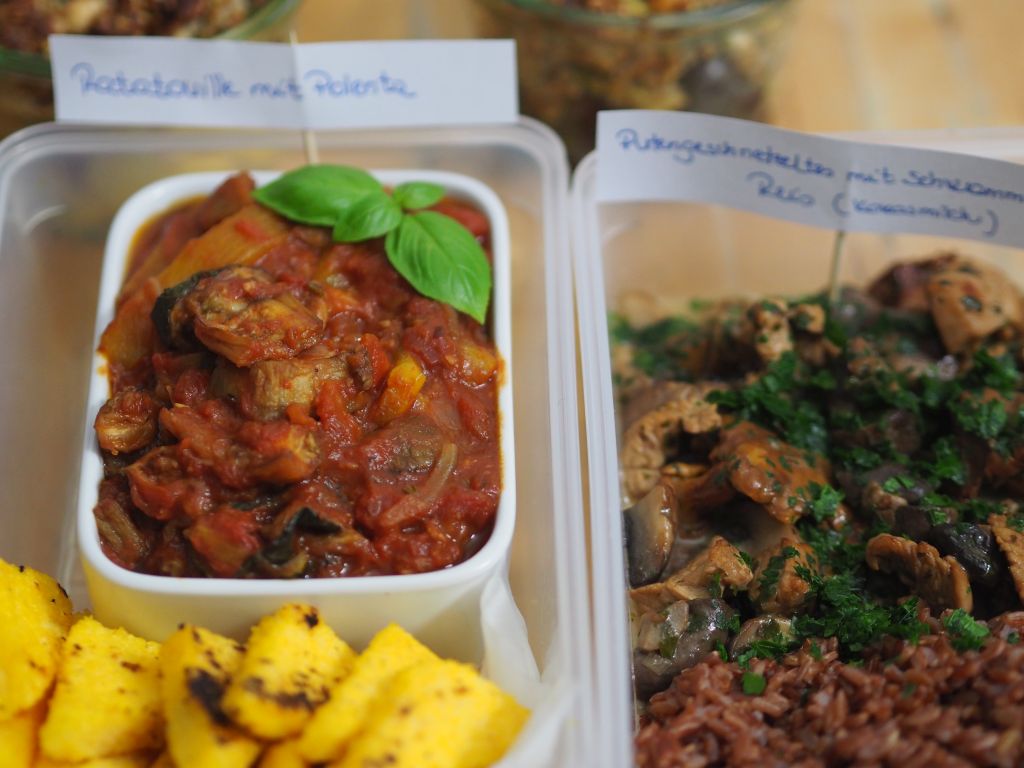 Kürbis für die Kürbissuppe, gegrillte Paprika, Karfiolreis, sowie rote und gelbe Navetten wurden im Backrohr mit dem Braten gleichzeitig gegart, um Strom zu sparen. Das wird alles nächste Woche verwendet.