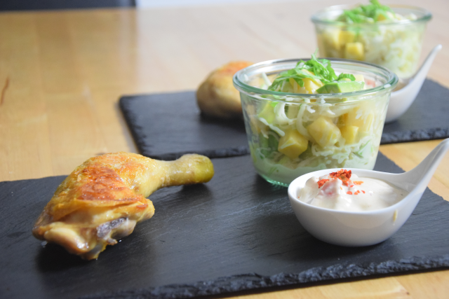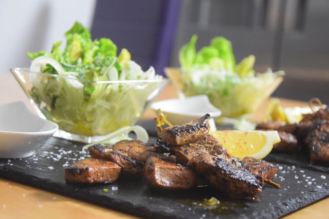 Wasserspinat, leicht scharf, kühlt die erhitzten Gemüter. Erfrischend der fruchtige Tomatinensalat in saurem Gewand.