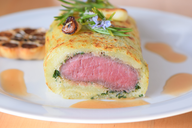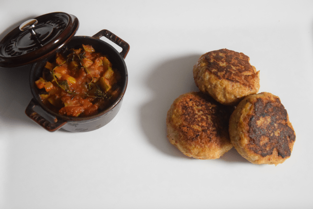 Weißer Schwertfisch, sommerlich, mit Mehl, leicht bekleidet, kurz gebraten, weiße Zwiebel zart, dahin geschmolzen, ein Fest der süßlichen Röstaromen. Verschmelzen miteinander. Oh, Du süße Maillard-Reaktion!