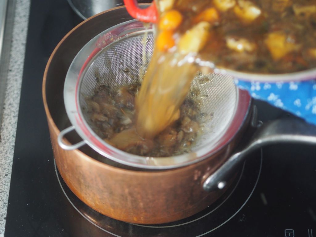 Das Fett vom Konfieren wird abgeseiht, ist wiederverwendbar.