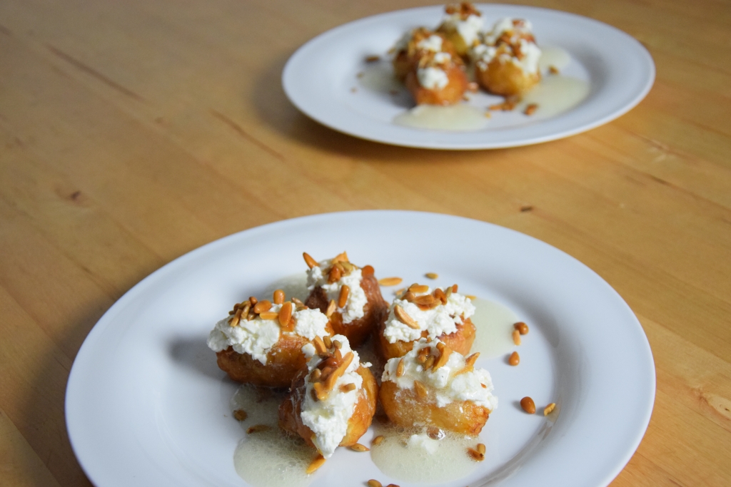 bestehen aus Teigtaschen, die mit Bergkäseschaum gefüllt werden. Ein kulinarisches Trompe-l’œil als Vorspeise.