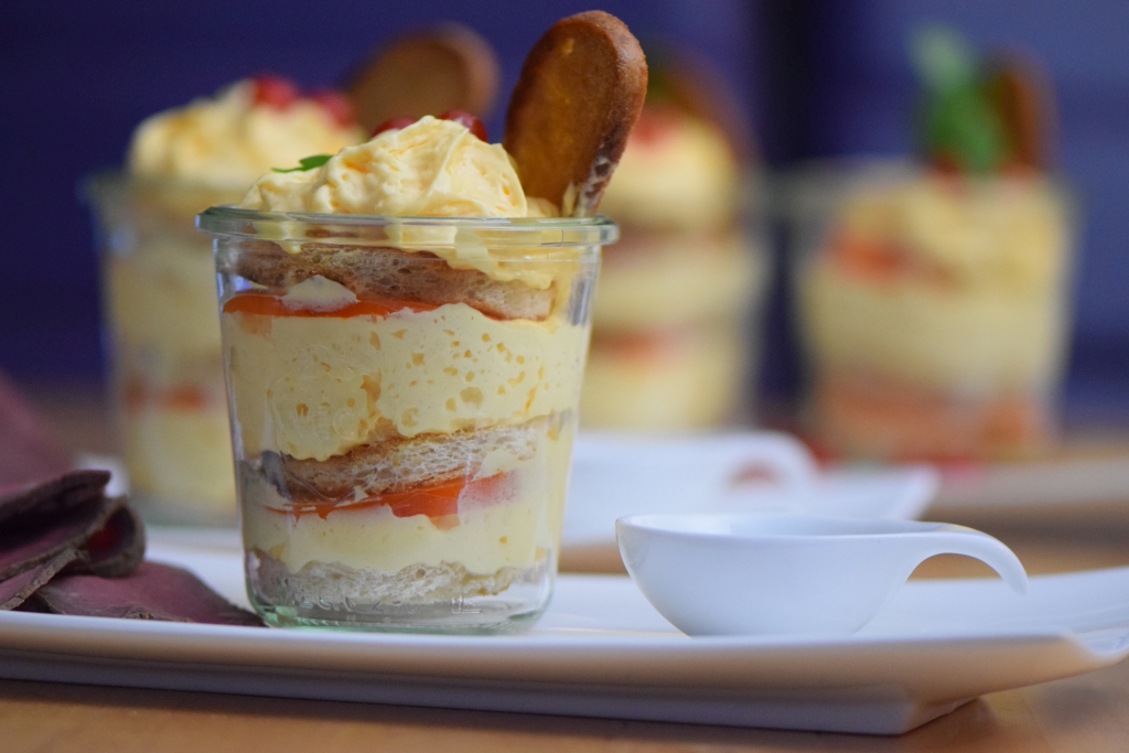 im Glas mit Toast und Schnittlauchsauce. Silvesterbuffet Nummero Drei.