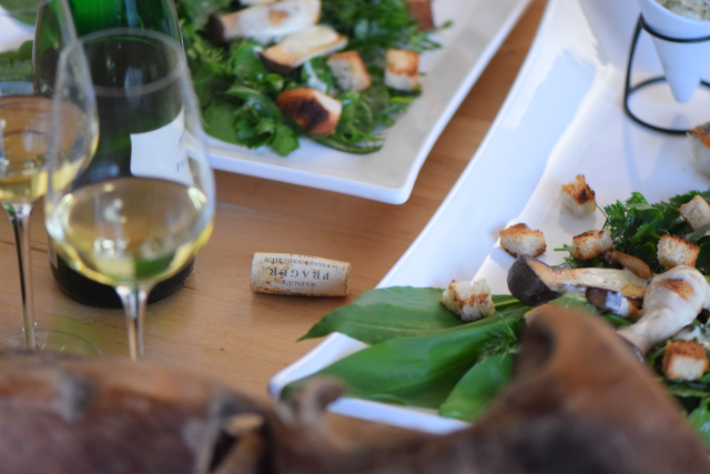 Dazu Rotbarschfilets in der Pfanne braten. Weißen Spargel in einem Dampfbad dünsten.