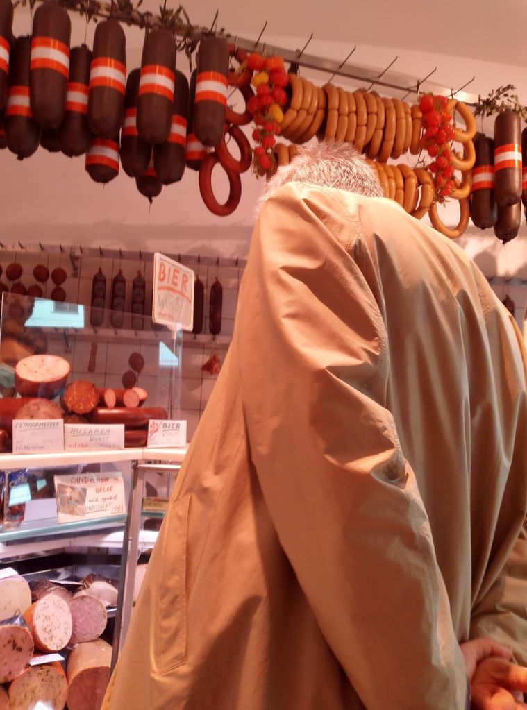 Bei der Inspektion der Wurstwaren haben manche Leute ein genaues Auge! Nicht, daß ihnen was entgeht.