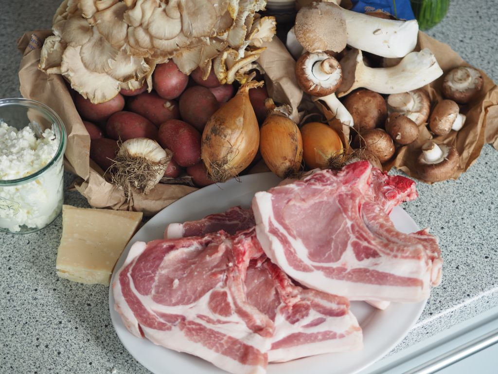 Zutatenbild Schweinskoteletts mit Kartoffeln al forno. Die Schweinskoteletts waren von der Fleischerei Ringl.