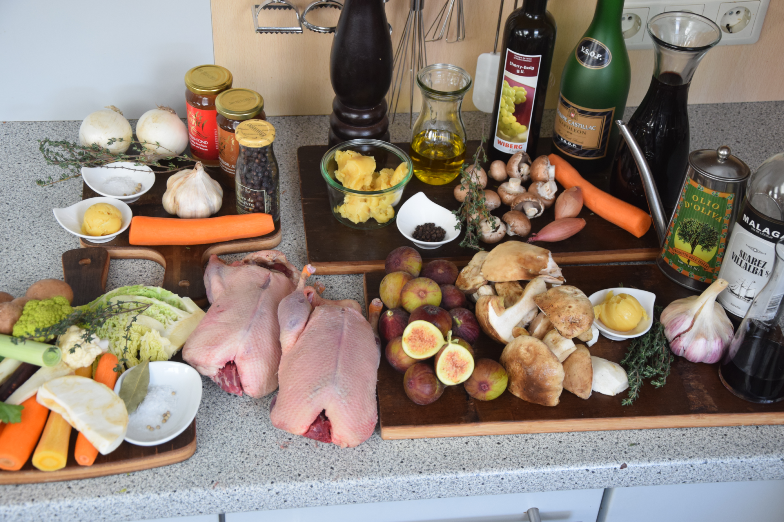 Heute gibt es etwas aus dem Bistro-Kochbuch von Alain Ducasse. Aber was wird (noch) nicht verraten. Nur so viel: am Anfang steht ein Gemüsefond, der gerade vor sich hin köchelt. Hier ein Bild vom Mise en Place. Wo könnte wohl die Reise hingehen?