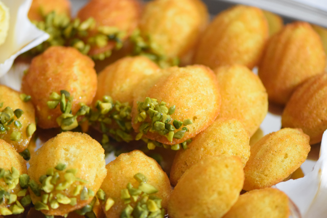Bei diesem Rezept werden für den Teig alle Zutaten einfach zusammengeworfen, das Aufschlagen von Ei und Zucker entfällt. Dafür bekommen diese Madeleines noch einige Geschmackskomponenten dazu: Safran, Orangen, Honig. Diese Madeleines sind nicht so luftig und leicht wie die originalen Madeleines aus Commercy, werden aber dafür nicht so schnell trocken, wie Yotam Ottolenghi und Helen Goh in ihrem Buch „Sweet – Süße Köstlichkeiten“ schreiben. Sie haben sich da etwas ausgedacht, das neuen Schwung in ein bekanntes, traditionelles Rezept bringt.