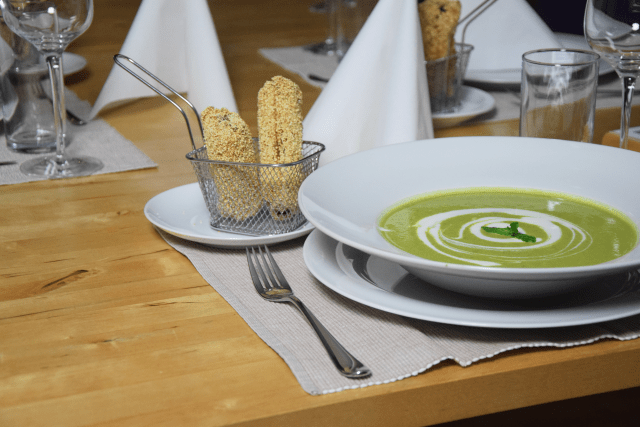 Erbsensuppe mit Ziegenkäse-Zigarillos