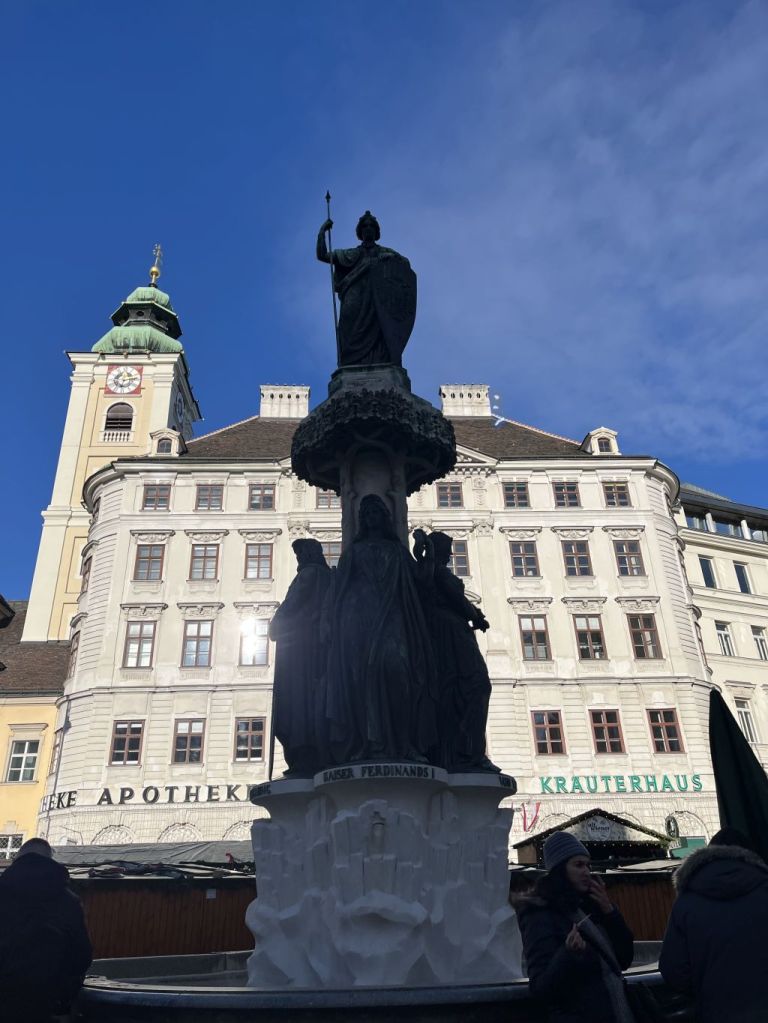 Auf dem Christkindlmarkt auf der Freyung: Austria-Statue (Verkörperung der k.u.k. Monarchie)