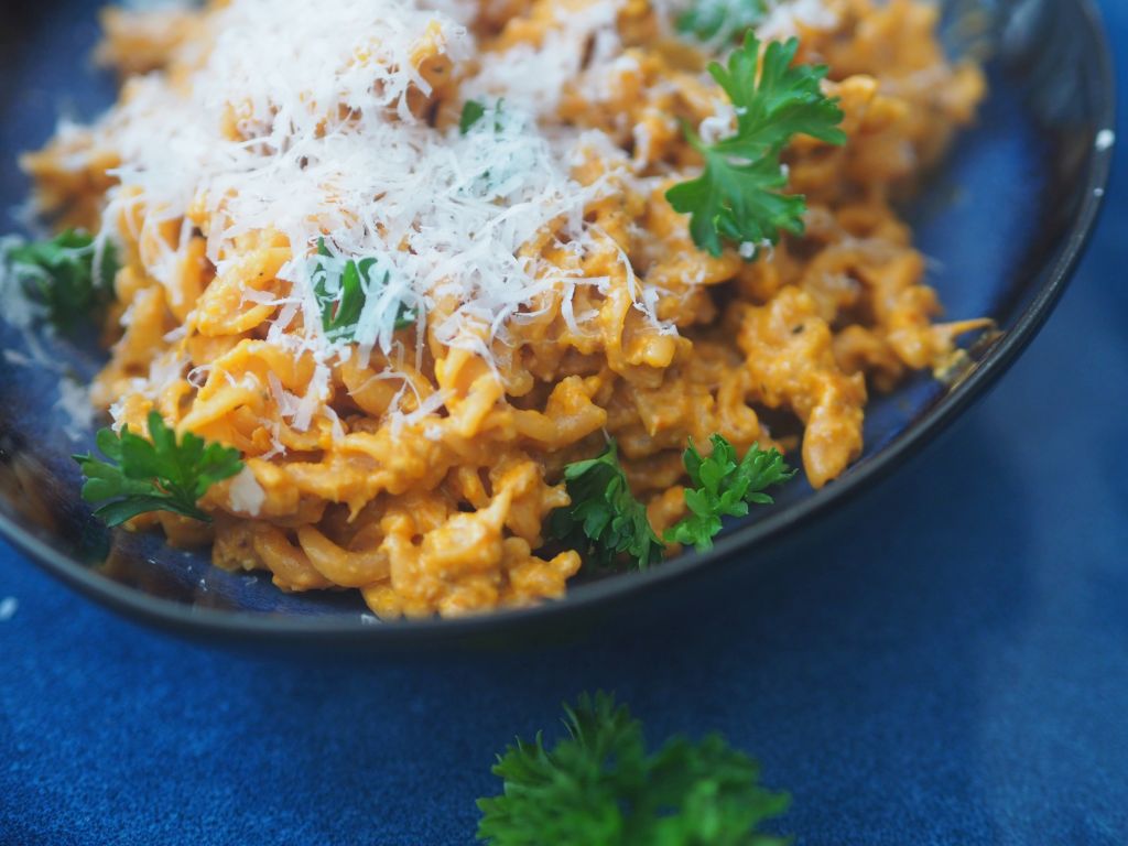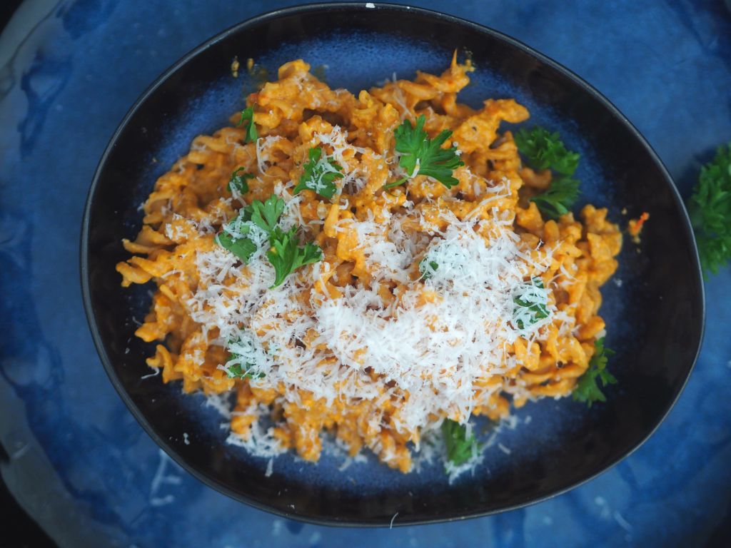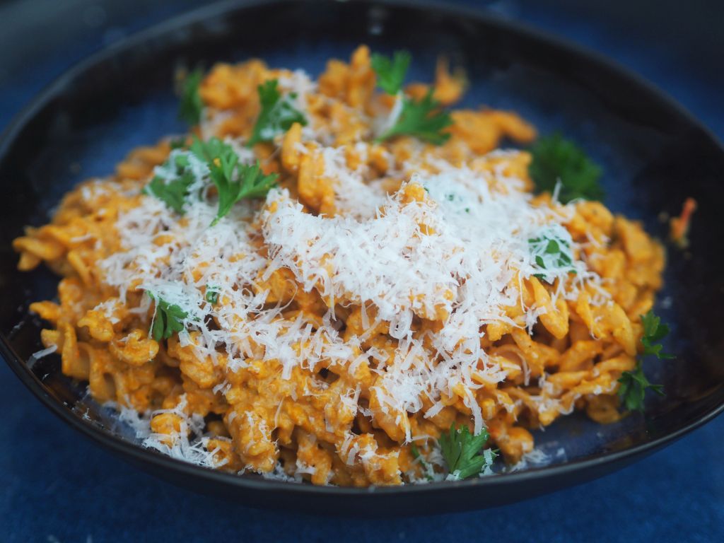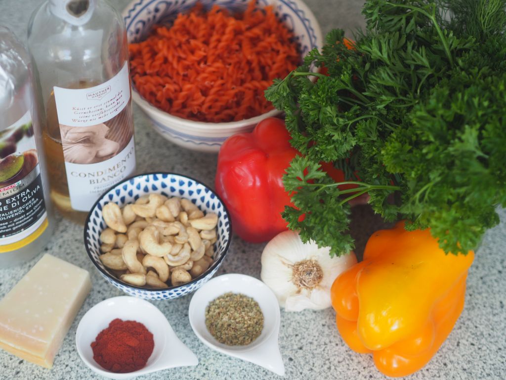 Linsen-Fusilli mit Paprika-Cashew-Grillsauce