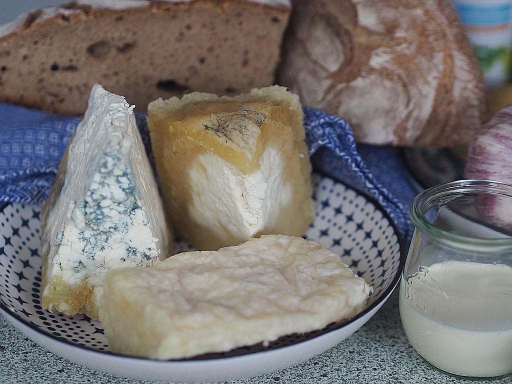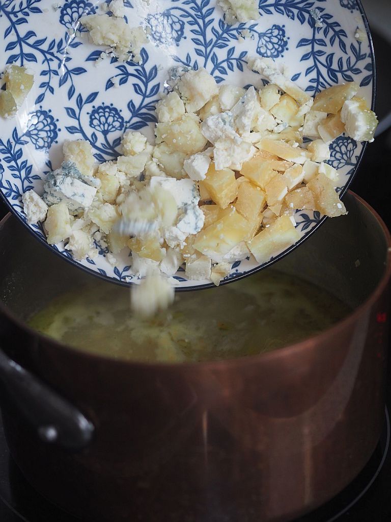 Graukassuppe? Ist das Hüftgold? Nein, Graukas hat wenig Kalorien, denn er enthält wenig Fett und wenig Kohlenhydrate aber viel Eiweiß! Dann her mit dem Kas! Aus Innsbruck aus Kranebitter’s Käsekulinarium in der Innsbrucker Markthalle haben wir vier verschiedene Graukas mitgenommen, Drei davon fanden ihren Weg in den Suppentopf: Graukäse Blau Bergsenn Zillertal, Graukäse Premium, Graukäse Laib Weerberg, allesamt 1 % F.i.T.