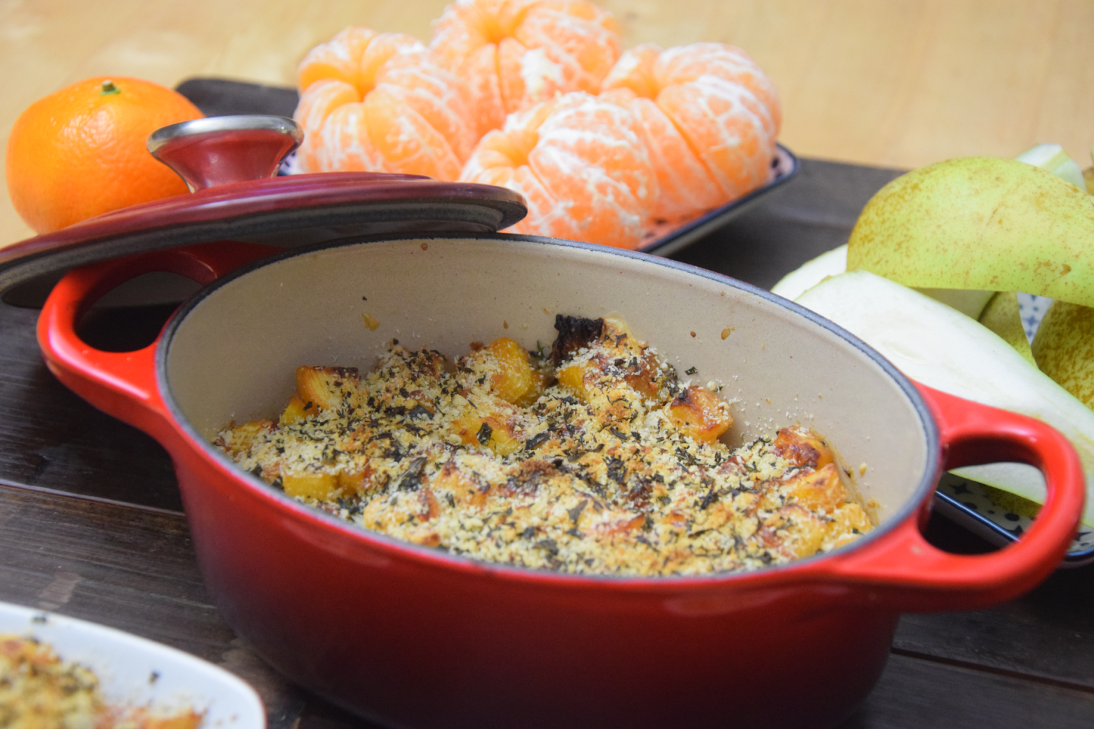 Für die Dotterbutter 1 / 8 TL Xanthan, 3 Eigelb, 125 Gramm Butter verrühren. Mit Salz abschmecken. Die eine Hälfte mit Crème fraîche, gehacktem Kerbel und geriebenem Cheddar-Käse zusammenrühren. Die gewürfelten Rüben in die Kokotten geben. Mit der Dotterbuttermischung beträufeln, geriebenen Käse darüber streuen. Bei 180 Grad zirka 10 Minuten backen, jedenfalls so lange bis es goldbraun ist.