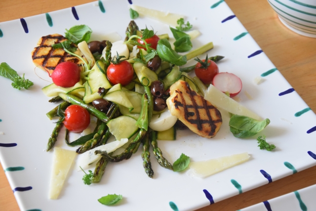 Halloumi, Zucchini, Cherry-Tomaten, wilder grüner Spargel, Radieschen rot und weiß, Olivenöl, Parmesan. Knackig und resch. Wild und gegrillt. It’s a wild wild world…. Aber weniger ist mehr.