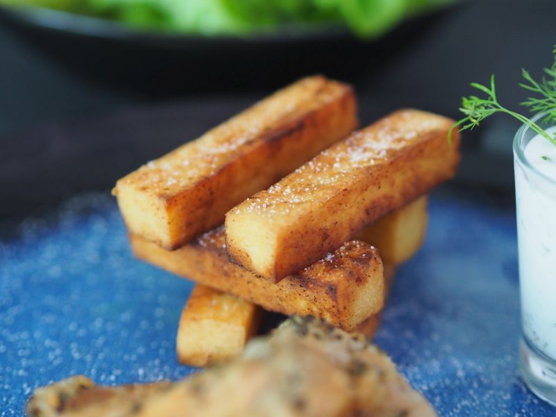 Rezept Gebratenes Huhn mit Panisse und Gemüse