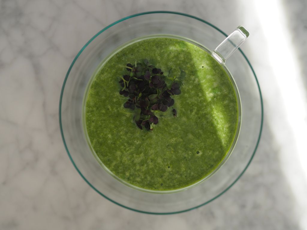 Davor gab es eine Kräuter-Bärlauchsuppe mit Pecorino-Chips. Lauch anschwitzen in Butter, Bärlauch dazugeben, Petersilie, Schnittlauch und mit Wasser aufgießen, bis alles bedeckt ist, weich garen. Im Standmixer fein pürieren. Durch ein Sieb streichen und wieder in die Pfanne rein. Schlagobers reingeben und mit Salz und Muskatnuß abschmecken.