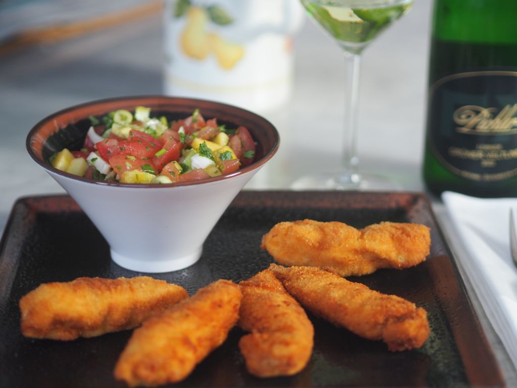 Weinbegleitung: Esterházy, Der Prinz Cuvée 2022, das ist ein ganz ein leichter, ein fruchtiger Weißer. Sehr gefällig zum Backhenderl.