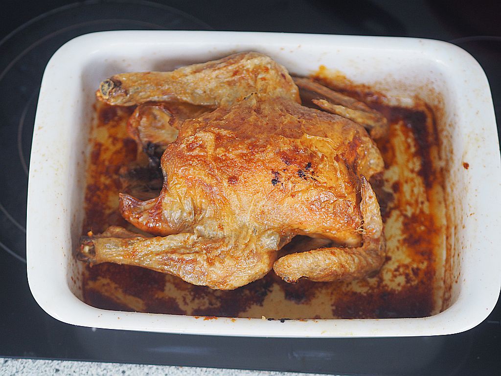 Unser Wildhendl kommt vom Biobetrieb Schweitzer, einem Vierkantbauernhof in Weistrach/ Mostviertel und wurde gekauft bei Biofeld in Wien. Das Wildhendl ist eine österreichische Züchtung, den Namen „Wildhendl“ hat es bekommen, weil sein Fleisch etwas dunkler ist und der Geschmack entfernt an Wild erinnert. Die Hendln laufen über den Waldboden, wo sie nach Herzenslust picken und scharren dürfen. Dabei fällt mir der TV-Bericht auf ServusTV ein über die schrecklichen Herstellungsbedingungen im Bereich des italienischen Hühnerfleischproduzenten AIA aus Verona. Die Tiere werden unter qualvollen Umständen gehalten, die so furchtbar sind, daß ich sie hier gar nicht erwähnen will. Vor allem aber haben mich bestürzt die Reaktionen der Konsumenten in dem Bericht von ServusTV mit ihrem gnadenlosen Anspruchsdenken, die gewöhnt sind an billiges Hühnerfleisch und überhaupt nicht daran denken, ihr Kaufverhalten zu ändern. Aufklärung, ob es sich um einen Einzelfall in einem Betrieb handelt oder das an der Tagesordnung ist und welche Vermeidungsstrategien für die Zukunft geplant sind, erfolgte bisher nicht; dabei ist es schon wieder ein Monat her. Und die Produkte liegen immer noch bei Spar in den Regalen. Im Vergleich zu diesen entsetzlichen Zuständen ist unser Wildhendl vom Vierkanthof im Mostviertel wirklich etwas ganz Besonderes.