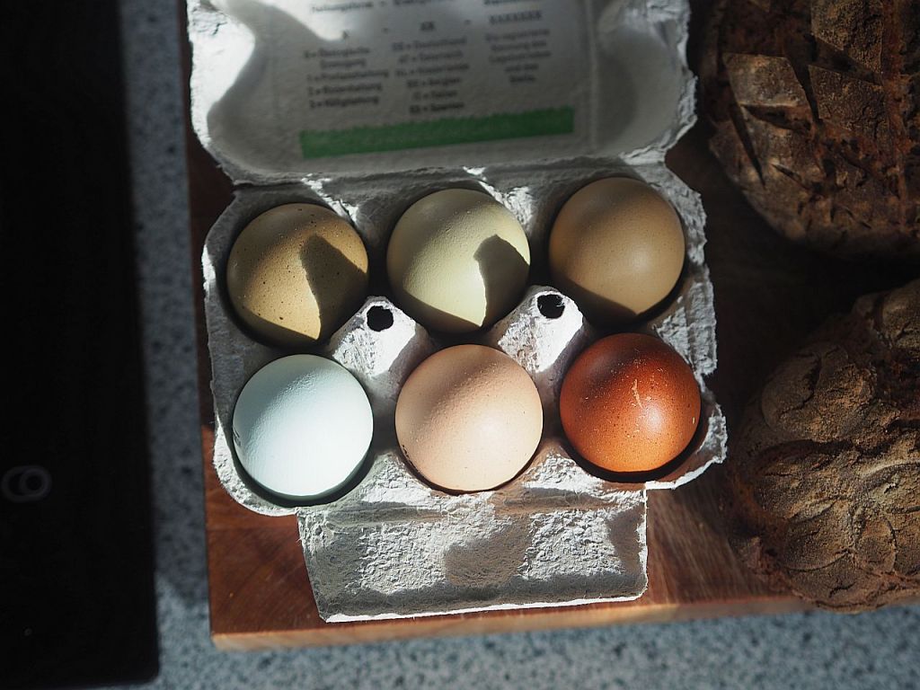 Hopi-Bauern – haben die was mit den Hopi-Indianern zu tun oder meinen die eigentlich Hobbybauern und fanden die Schreibweise witzig? Man weiß es nicht, jedenfalls von diesen haben wir 6 Eier gekauft. Die Eier von den Hopis gibt es zum Wochenende hin, bei gurkerl.at. Es sind Eier von Bressehühnern, Moorhühnern, Olivlegern, Araucana, Seidenhühnern und Meierijs`Hoen Hühnern.
