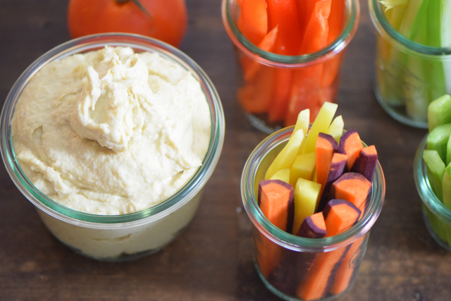 - Karfiol-Bohnen-Hummus mit Dille, Gurken und Rucola