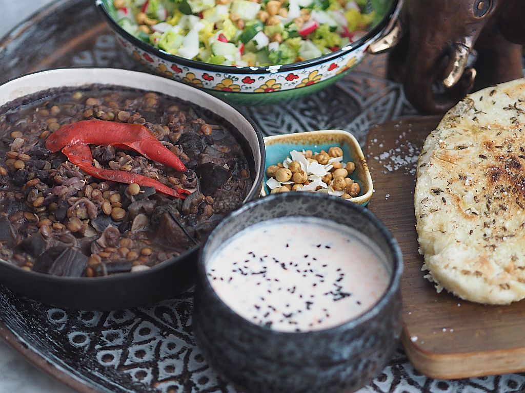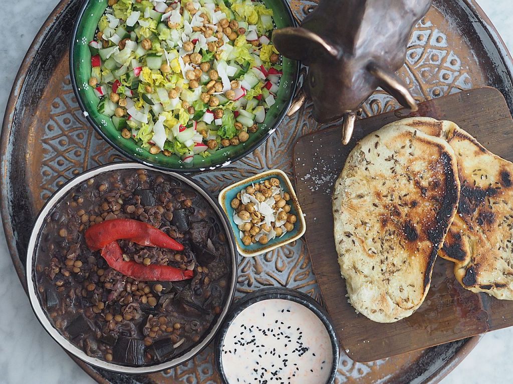 Auf diesem Teller ist alles aus Österreich außer dem Teller selber*: die Pfirsiche von Leo (Hollabrunn, Weinviertel), der Whisky von Haider (Roggenreith, Waldviertel), das Dry Aged T-Bone Steak vom DUROC-Freilandschwein von Schreckbauer (Bischofshofen, Pongau), die Kartoffeln von Schramm (Großengersdorf, Weinviertel), Knoblauch von Stekovics (Frauenkirchen, Seewinkel), Rosmarin von Altschachl (Groß-Enzersdorf, Marchfeld).